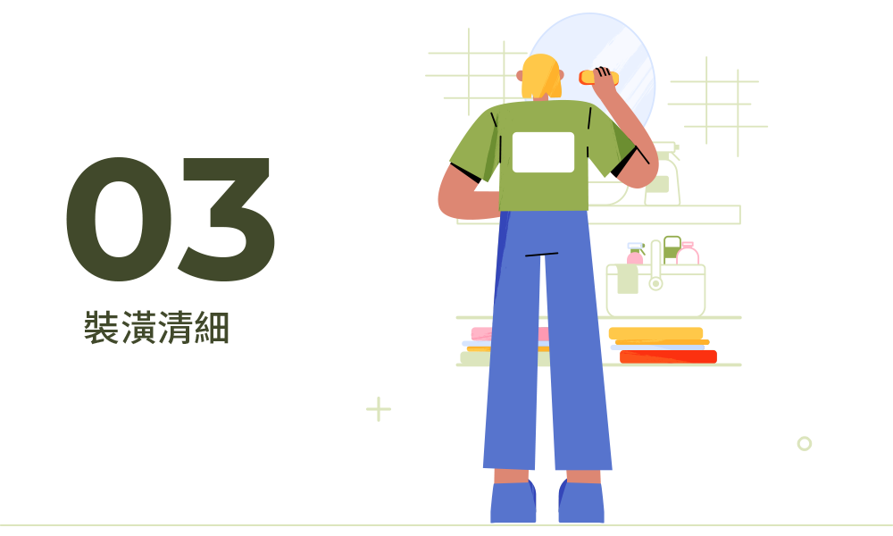 裝潢後的清潔不容忽視。我們專業的清潔團隊將處理所有裝潢產生的塵埃與殘留物,並使用環保清潔劑,讓您的新空間煥然一新。