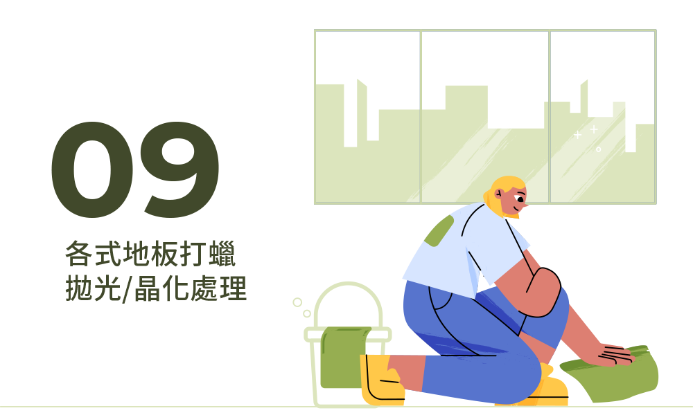 我們的地板保養服務,包含專業打蠟與晶化處理,能有效保護各類地板,延長使用壽命,並保持美觀與光澤,提供長效保護。